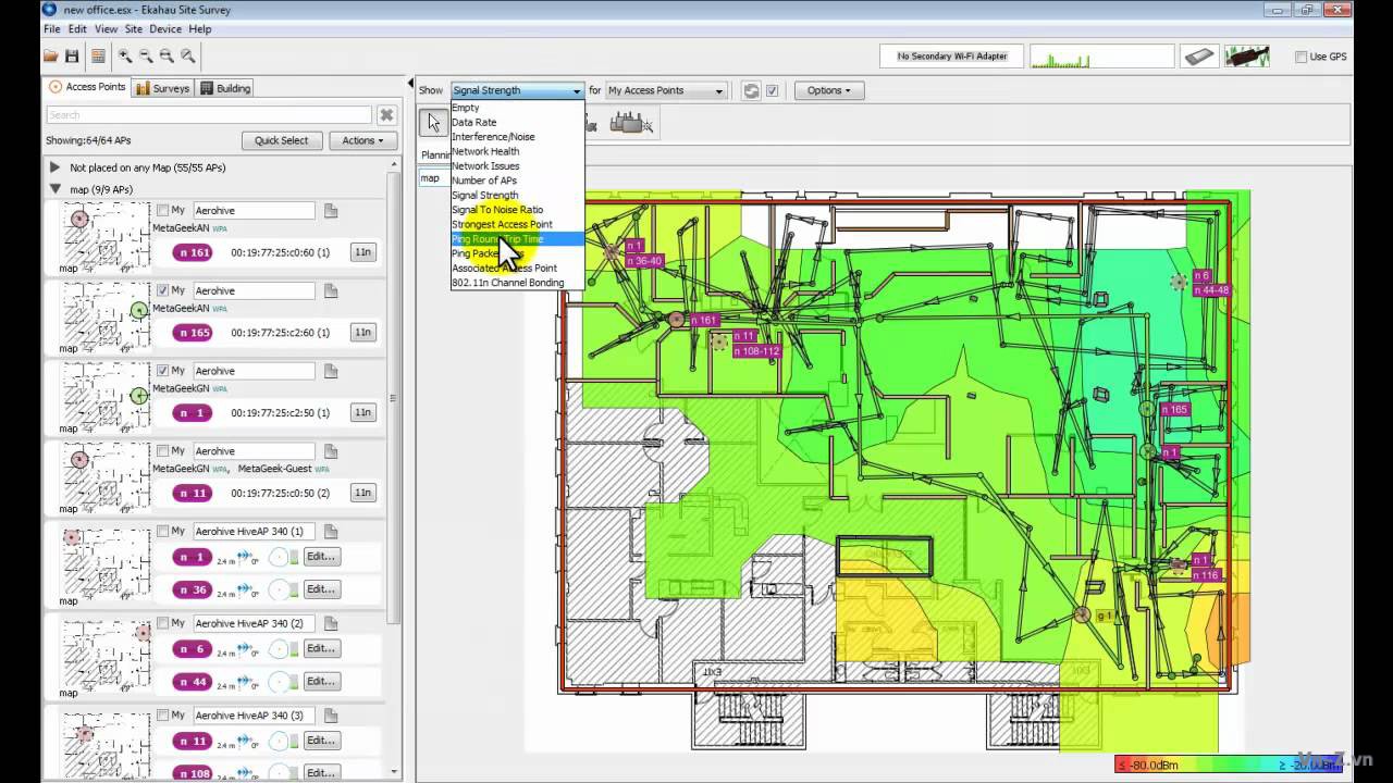 Dưới đây là mô tả về các loại tường và mức độ suy giảm tín hiệu tương ứng (đơn vị: dB) khi tín hiệu Wi-Fi đi q...